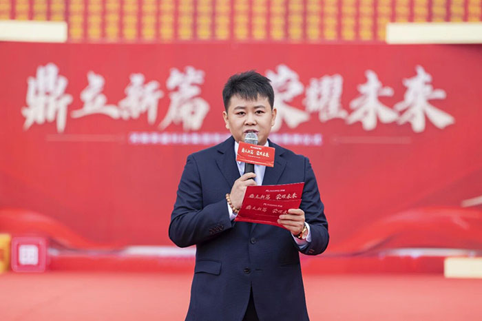 zui后,在熱情洋溢的現(xiàn)場氛圍中,河南榮盛科技集團董事長楚科奇發(fā)布了致辭。他首先代表集團向蒞臨現(xiàn)場的各位領導、嘉賓及全體員工表示熱烈歡迎與誠摯感謝。楚總回顧了集團十二年的發(fā)展歷程,指出新材料生產(chǎn)基地的建成,凝聚了全體榮盛人的智慧、汗水與堅守,是企業(yè)十二年奮斗征程上的重要里程碑,更是企業(yè)面向未來、決勝未來的戰(zhàn)略新起點。楚總強調(diào),新工廠的順利落成,得益于各級主管部門的大力支持與服務,也離不開集團管理層的協(xié)同與一線團隊的奮力拼搏。他特別感謝了王海軍總經(jīng)理及集團管理層,稱贊其在項目戰(zhàn)略定位與資源配置中發(fā)揮的關鍵作用;同時,他也向宋廣林總經(jīng)理及全體建設者致敬,感謝他們不畏艱辛、全力以赴,將一片荒蕪之地打造為現(xiàn)代化智能工廠。